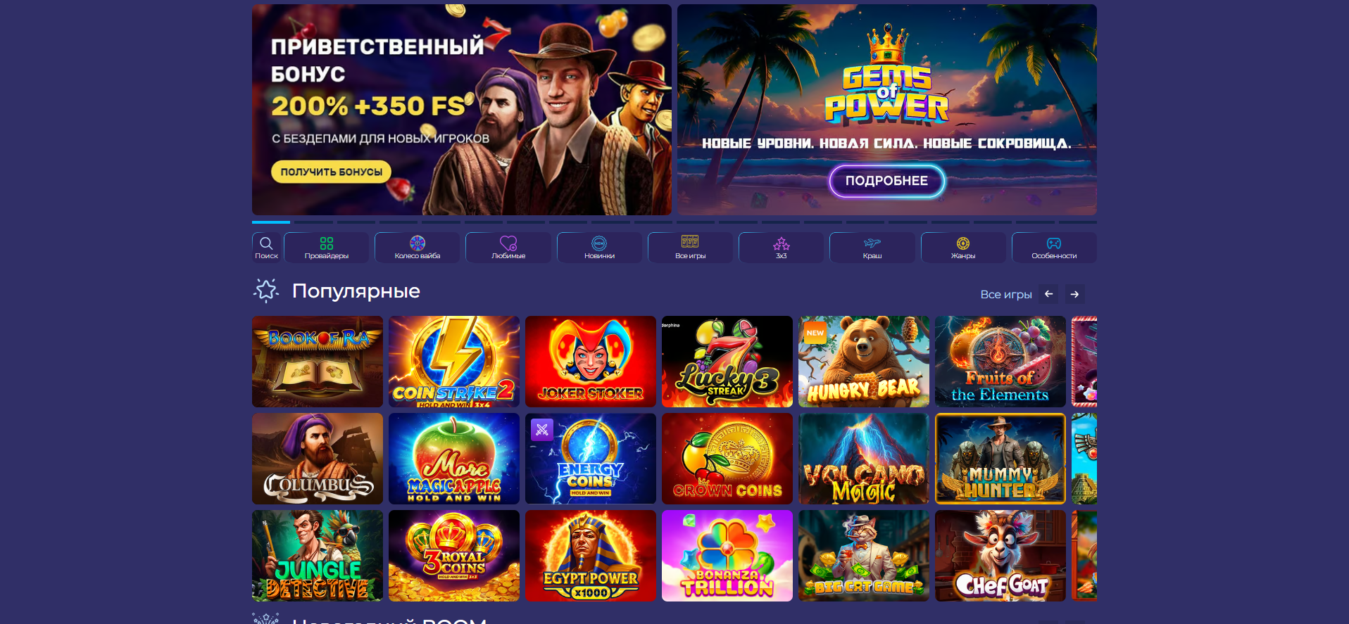 | Видеослоты | 5-6 барабанов, бонусные раунды, фриспины, волатильность средняя-высокая |